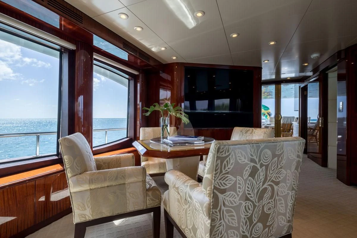 Welcome aboard the TOUCH, a magnificent 120-foot superyacht built with exquisite craftsmanship by Louisbourg in 2004 and meticulously refitted in 2021. With an imposing stature, she stands out with her aluminum hull and sleek exterior design that exudes elegance and sophistication. Her beam measures at a generous 25 feet and 12 inches, providing ample space for guests to enjoy the outdoors. The TOUCH is not just about aesthetics; she's also about performance. With a cruising speed of 9 knots and a maximum speed of 13 knots, she effortlessly glides through the waters, ensuring smooth sailing on all voyages.