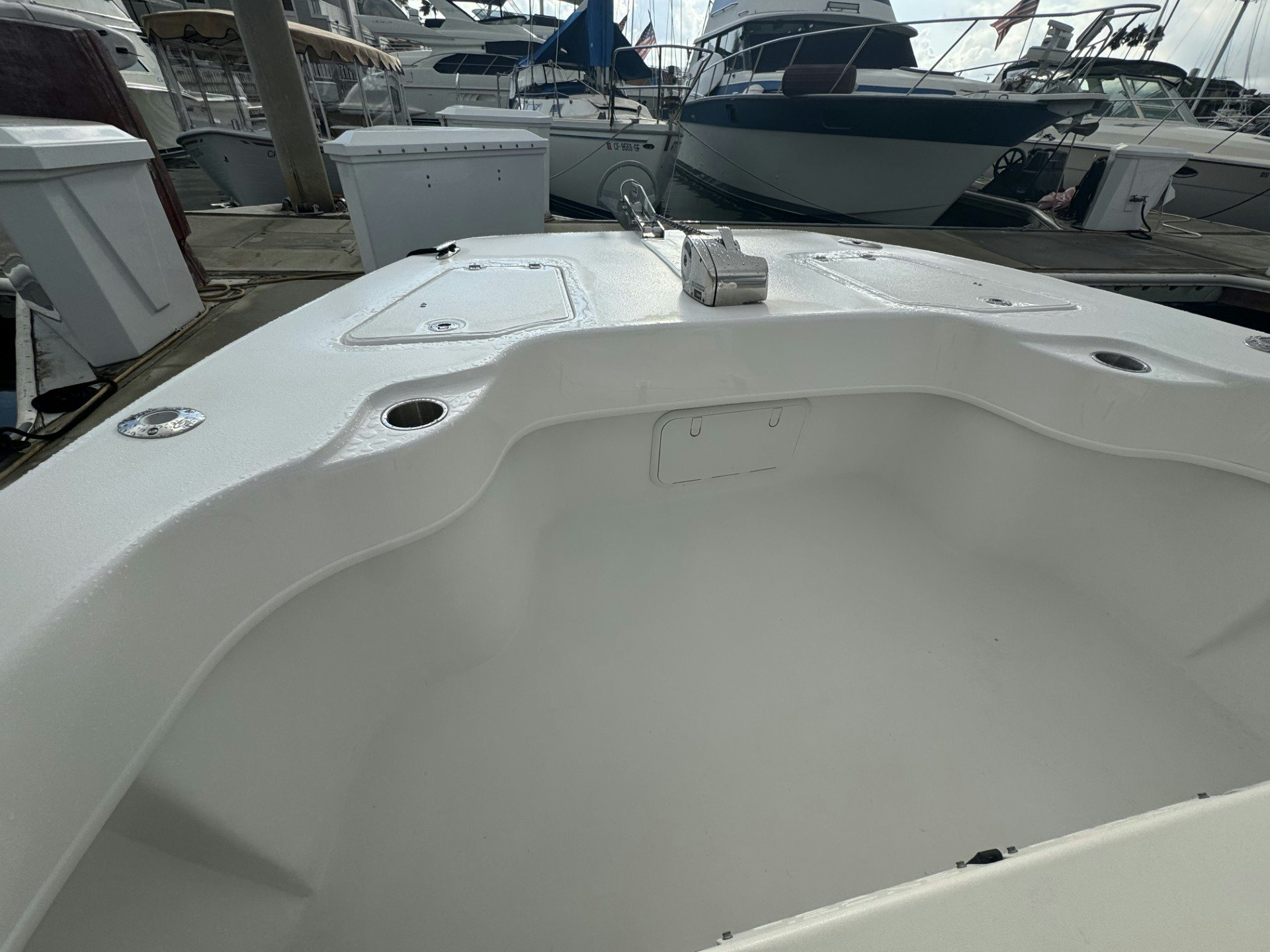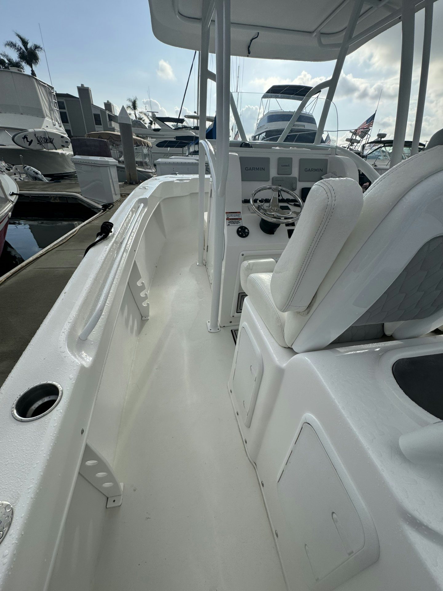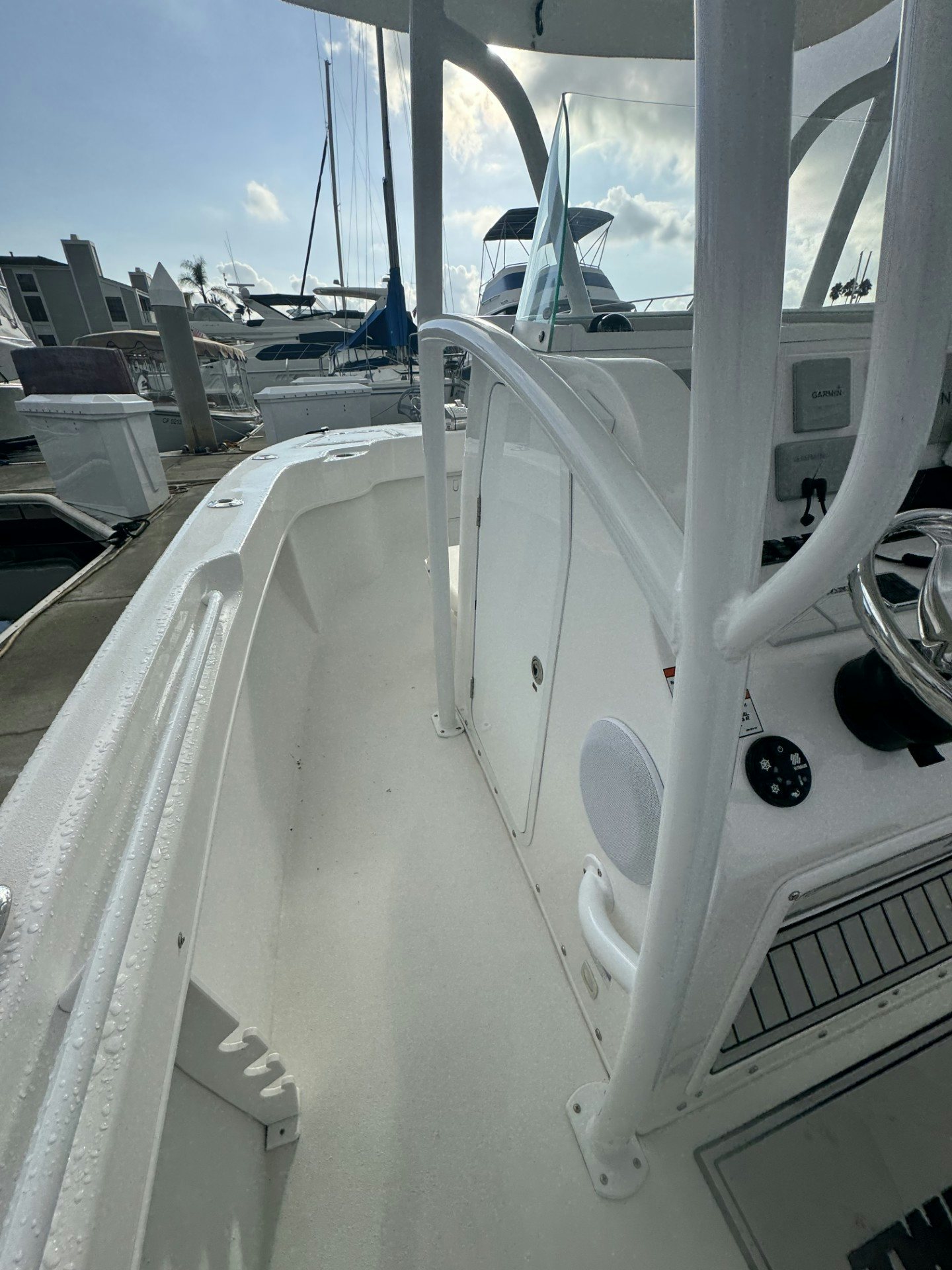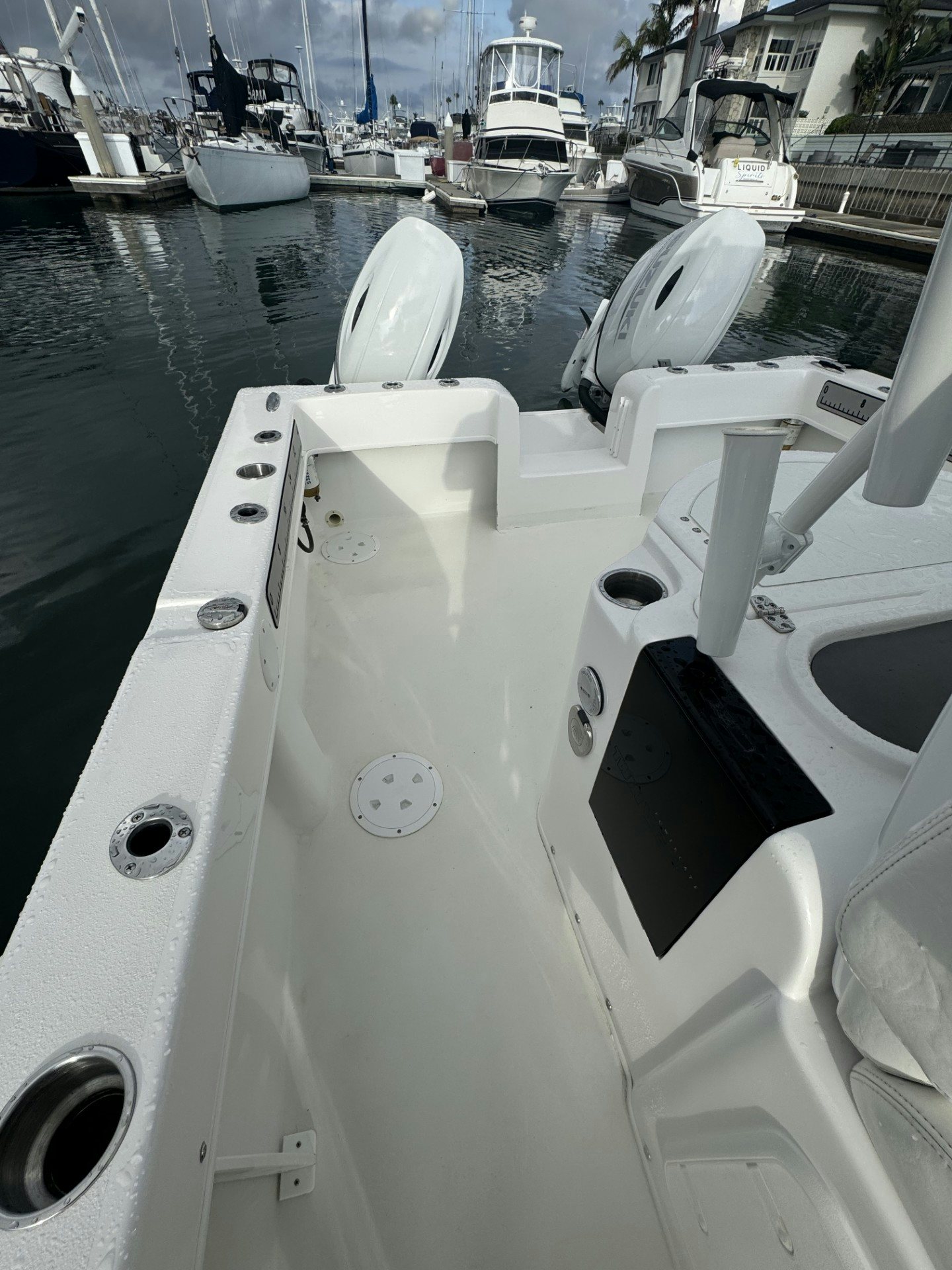 The 2021 26' TWIN VEE catamaran, owned and built by her original owner, combines stability with speed and fuel efficiency. Recently detailed in September 2024, this boat features a wide-open cockpit and bow deck, perfect for enjoying days on the water. Equipped with advanced Garmin electronics, including radar, chart plotter, depth sounder, and autopilot, she ensures seamless navigation. The upgraded helm chairs provide comfort, while a generous 40-gallon live well in the cockpit enhances fishing experiences.