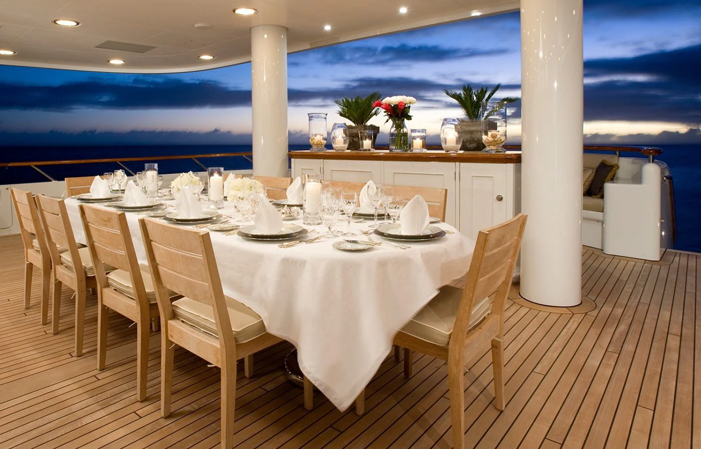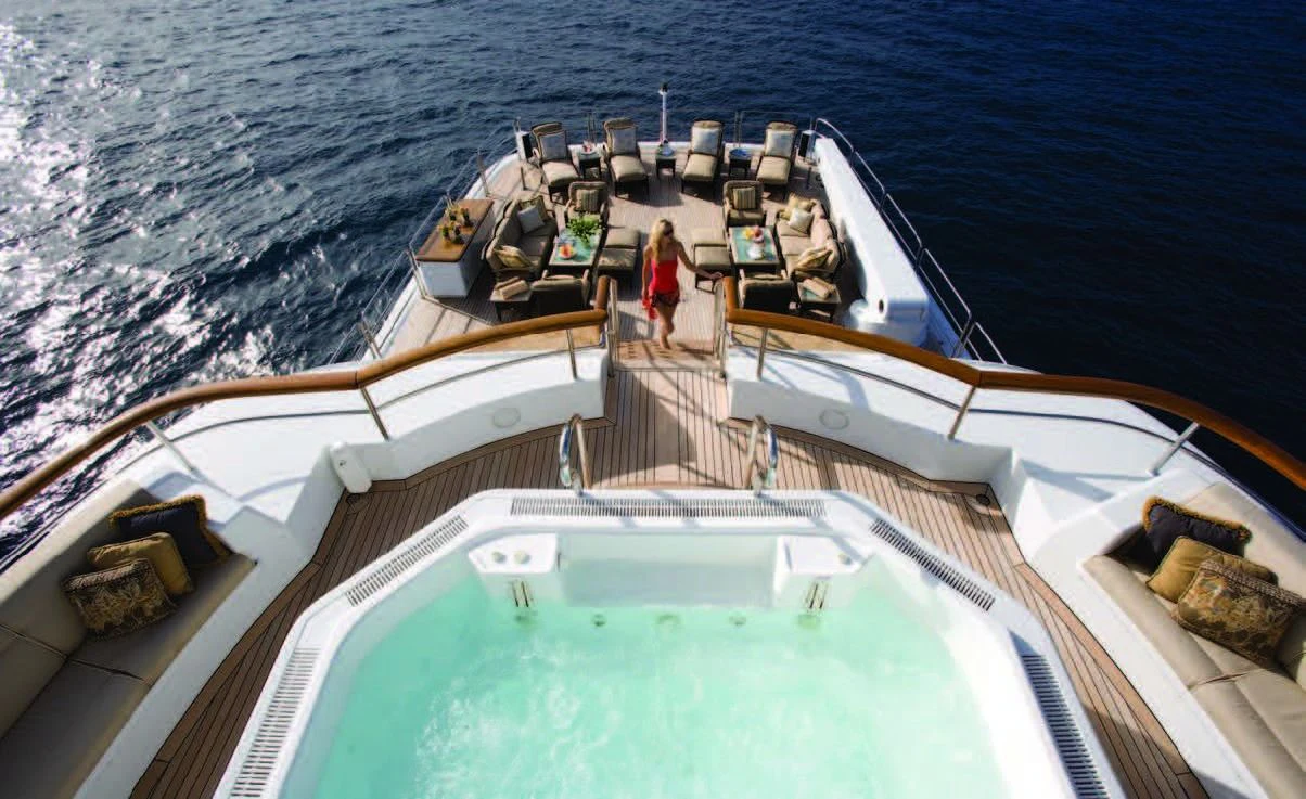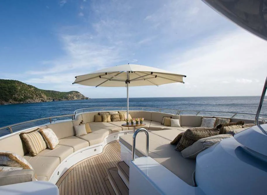 UTOPIA's exterior spaces are truly breathtaking. Her sundeck serves as a perfect spot for sunbathing under the clear sky while her alfresco dining areas provide an idyllic setting for memorable meals against the backdrop of picturesque seascapes. The yacht's lounging areas offer ultimate relaxation and leisurely comfort to all on board. Notably, UTOPIA boasts a steel hull that ensures robustness and durability even when cruising at top speeds of up to 16 knots.