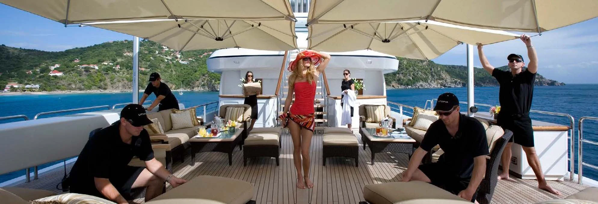 Finally yet importantly let’s not forget about water toys inventory – from jet skis to inflatables – everything you need for fun-filled aquatic adventures is right there on board! And overseeing it all is an experienced crew team of eighteen who ensure every journey aboard UTOPIA exceeds expectations!