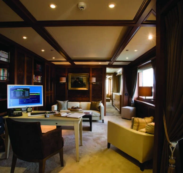 The yacht also houses two powerful Caterpillar Inc engines each boasting power output of 1999 hp /1491 kW that ensure smooth sailing through calm seas or stormy weather alike. Furthermore, her fuel capacity stands at an impressive 41,479 gallons ensuring long-range voyages without needing frequent refueling stops.