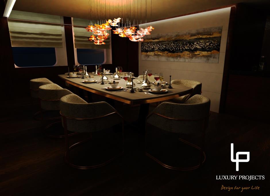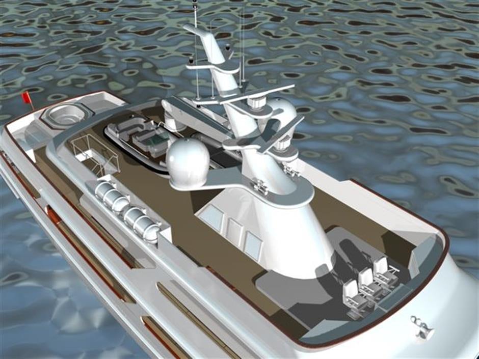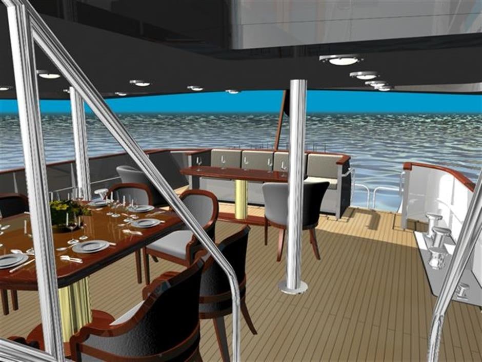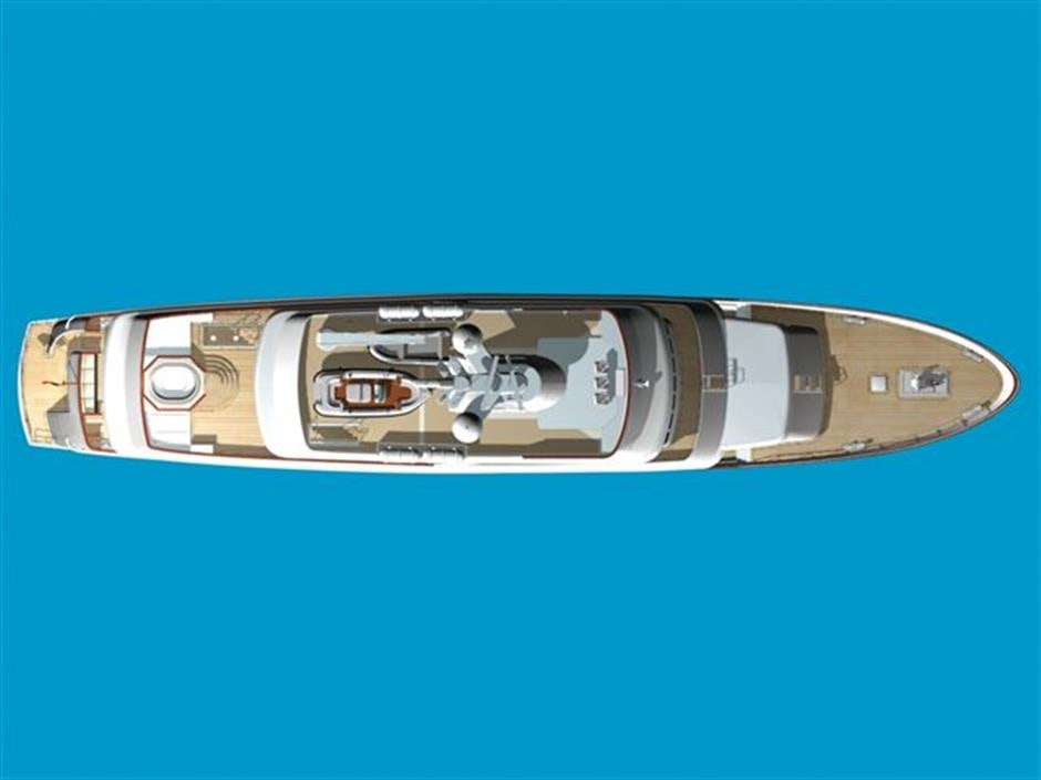 The exterior design of VALERIA is truly breathtaking. Her sleek lines and impressive length create an imposing presence on the water. The sundeck is an expansive haven for relaxation with ample space for sunbathing or enjoying alfresco dining under the stars. A notable feature includes her helicopter-capable deck that adds to the yacht's versatility and grandeur.