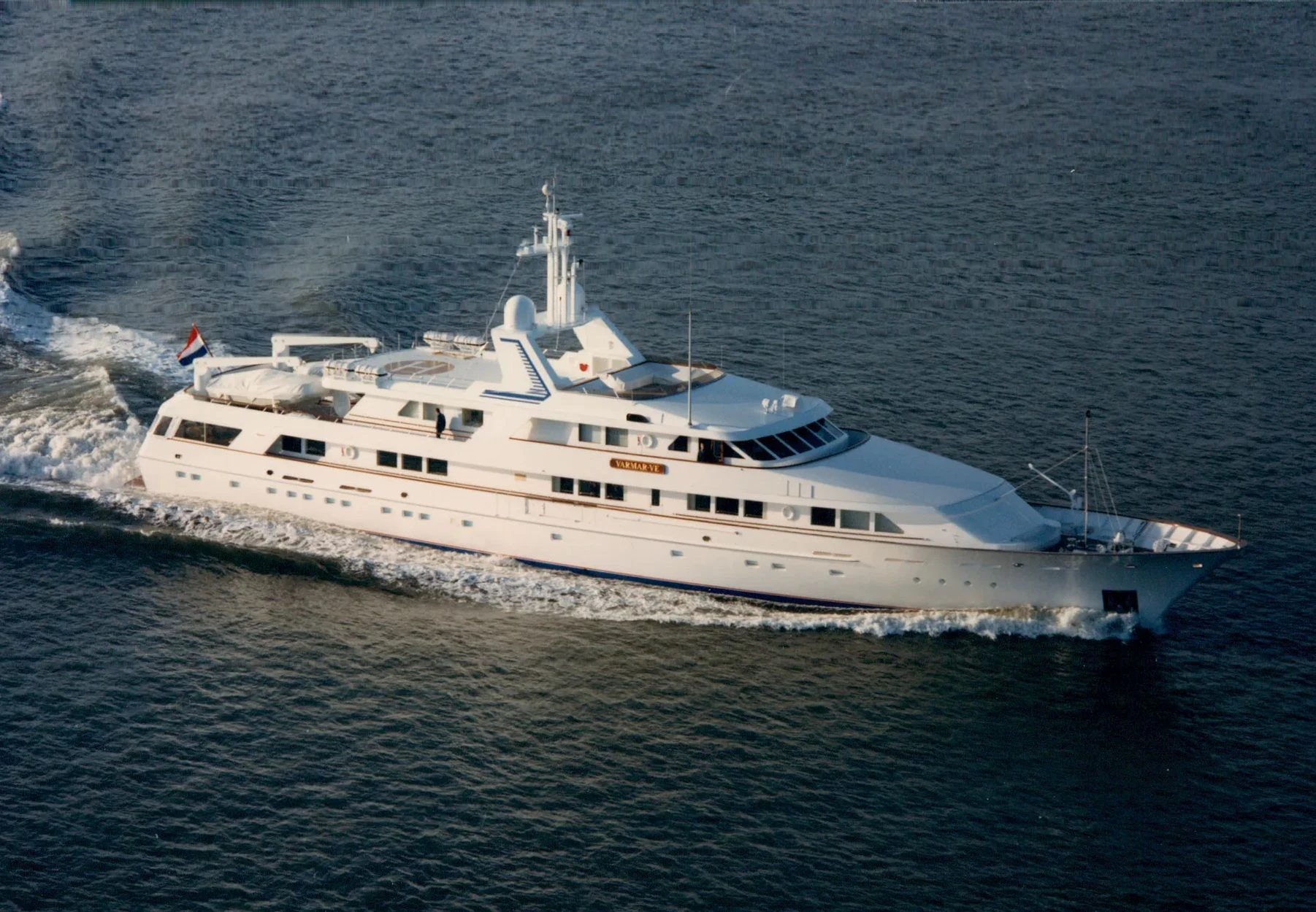 An emblem of grandeur and elegance, VARMAR VE is a magnificent superyacht that leaves an indelible impression on all who lay eyes upon her. Launched by the world-renowned Dutch shipyard Feadship in 1986, she is a testament to the enduring excellence of their craft. With an overall length of 182 feet (55.5 meters) and a beam measuring 30 feet and 8 inches (9.35 meters), this custom-built vessel exudes an aura of majesty that few can rival.