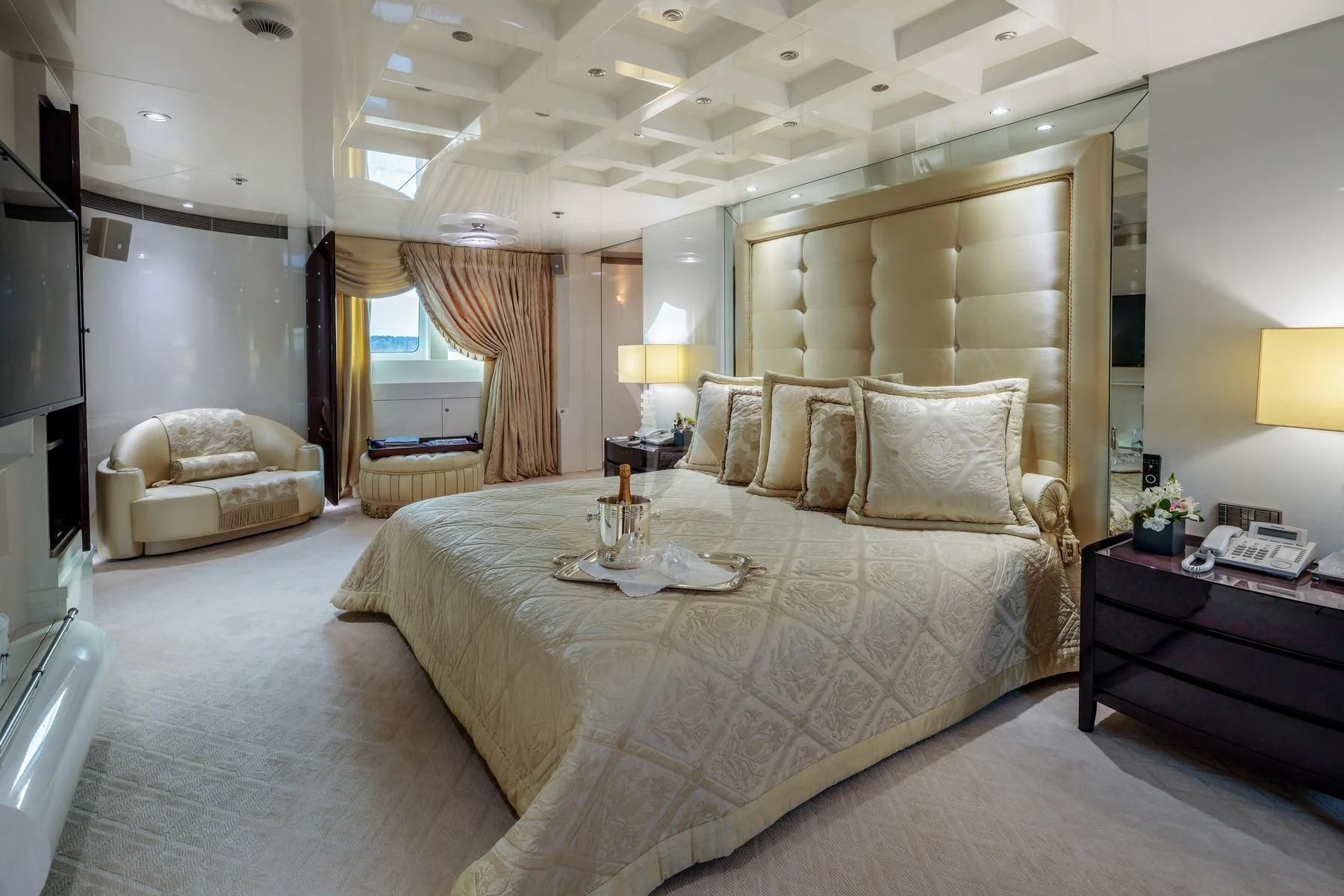 Step aboard VERA into an opulent world crafted meticulously by leading interior designers. Accommodating twelve guests across six luxurious cabins, each space radiates warmth through its tastefully chosen color palette and exquisite furnishings. The master stateroom stands as a sanctuary of tranquility featuring plush interiors amplified by natural light pouring in through large windows—a perfect retreat after a day filled with adventure.