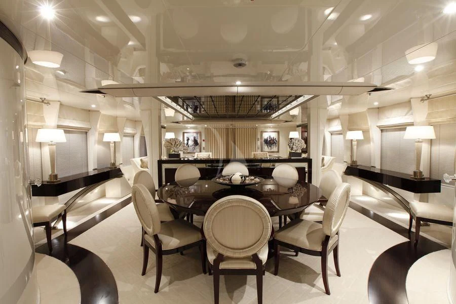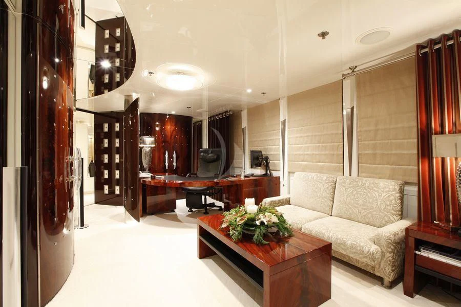 VERA’s main salon is a symphony of style and comfort—an ideal setting for social gatherings or intimate soirees—while her dining area exudes elegance that complements any gastronomic delight served on board. A state-of-the-art gym caters to fitness enthusiasts who wish not to break their regimen even while cruising across azure waters. Wi-Fi throughout the yacht ensures connectivity at all times allowing guests to share their memorable moments instantly.