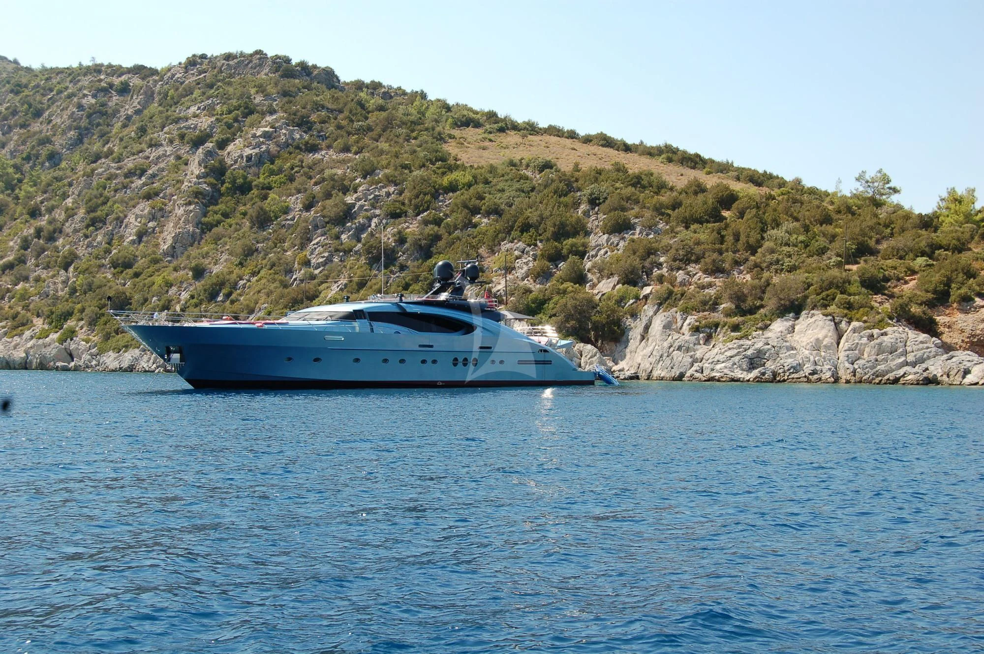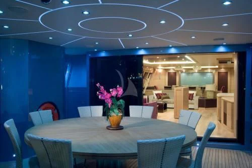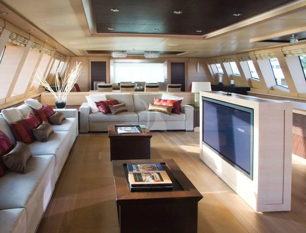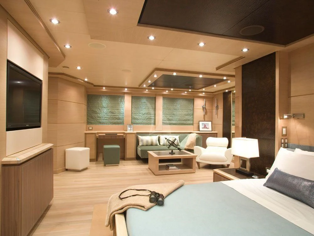 Step aboard WAVERUNNER and immerse yourself in her luxurious interior spaces designed for ultimate comfort and enjoyment. She can comfortably accommodate ten guests across five sumptuously appointed cabins while also providing quarters for seven crew members ensuring top-notch service at all times. The master stateroom stands out with its grandeur and elegance - a private sanctuary where soft lighting meets plush furnishings creating an atmosphere that invites relaxation.