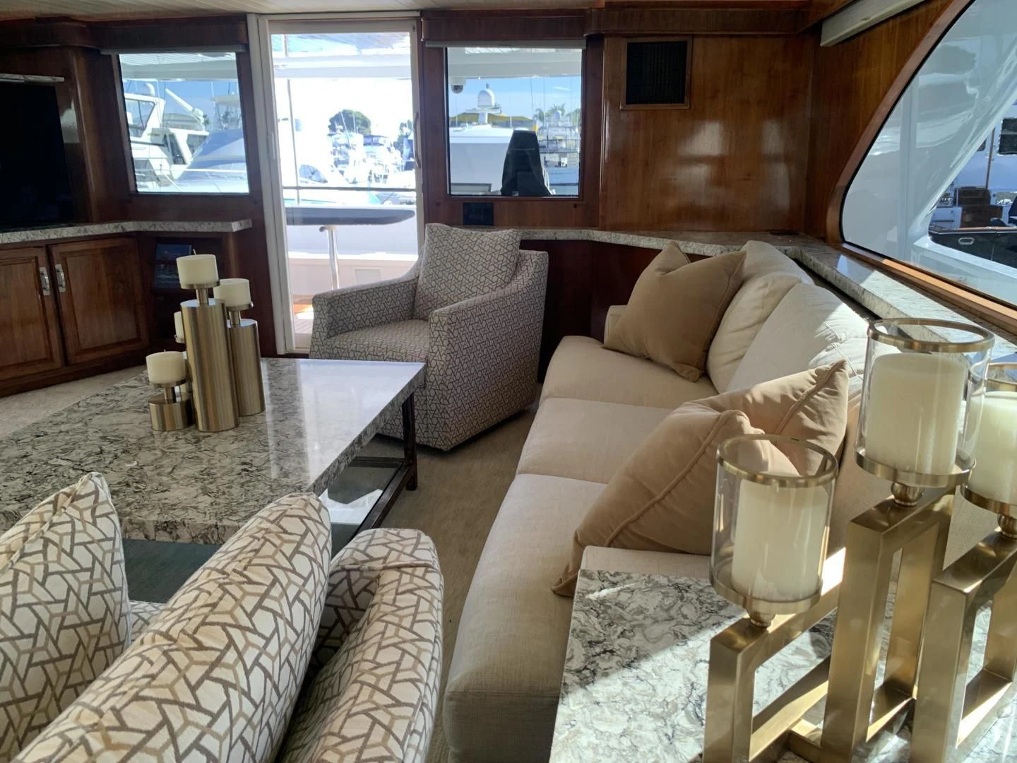 Motor yacht ALTAMAR features an elegantly styled interior with a warm and inviting ambiance. Her main salon features comfortable seating and a serving bar starboard, while formal dining for six is forward — this space allows for effortless entertaining. The yacht’s main salon also showcases large windows, which provide stunning views and lets in ample natural light. ALTAMAR features a fully equipped gourmet galley with a built in raised U-shaped dinette and teak inlaid table, this is the ideal space for enjoying breakfast with family and friends.
