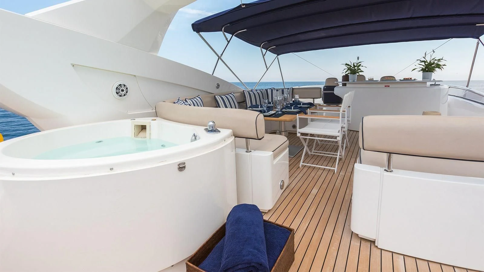 The exterior design of WINNING STREAK 2 is nothing short of spectacular, characterized by its sleek lines and majestic silhouette that commands attention wherever it graces the waters. The yacht’s GRP hull material offers exceptional durability while maintaining elegance and class. Aboard this stately vessel, one finds ample opportunity for outdoor relaxation and entertainment; from sun-soaked sundecks perfect for basking under azure skies, to alfresco dining areas where guests can savor gourmet meals against the backdrop of stunning seascapes.