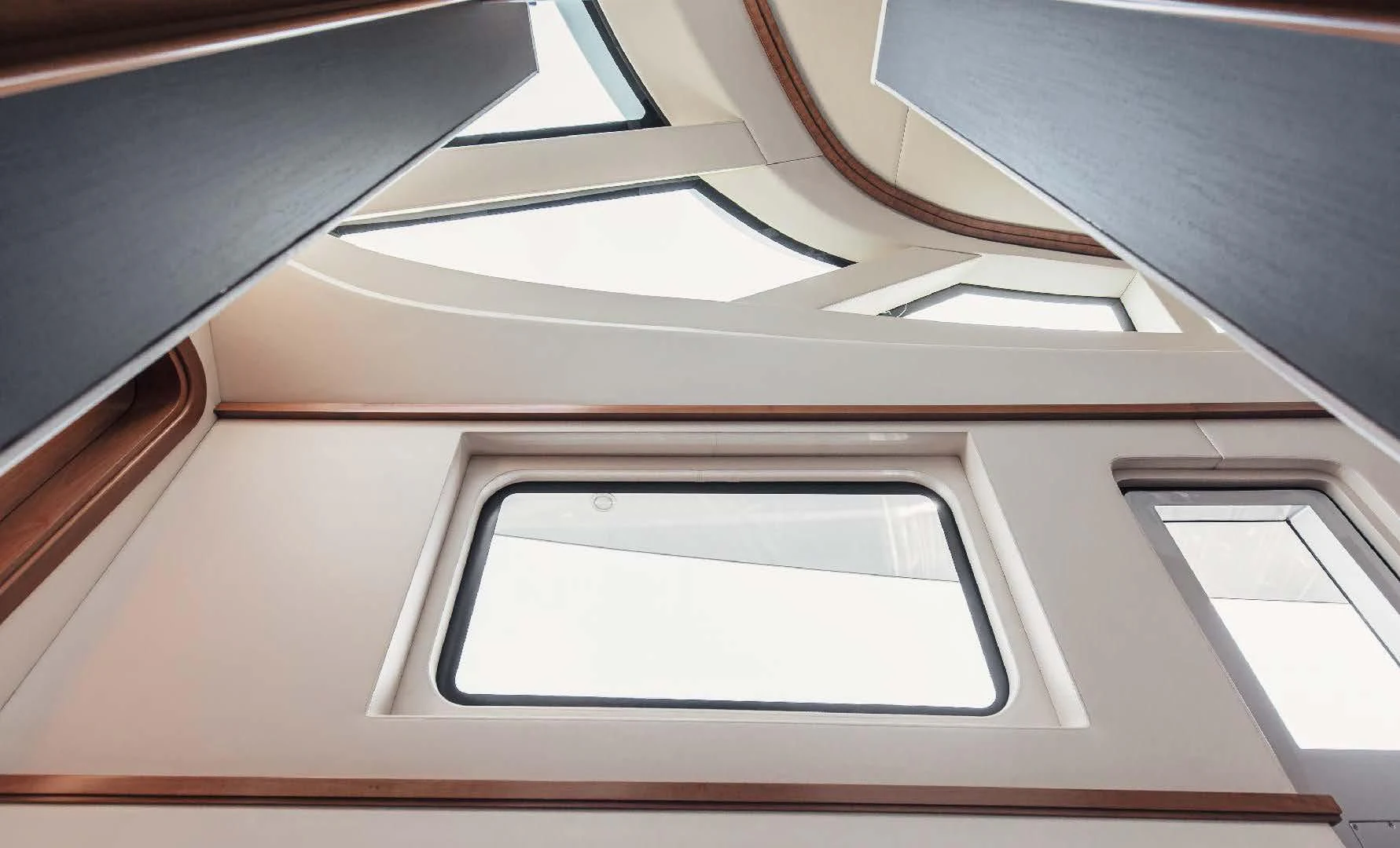 At XO OF THE SEA's core lies power – she houses an engine room featuring one Caterpillar C18 engine capable of producing 1159 hp / 864 kW power output which propels her at cruising speeds of up to 12 knots and maximum speeds reaching up to 16 knots. For enhanced maneuverability during docking or sailing through narrow channels, she features a Parker Motor Engine thruster bow system.