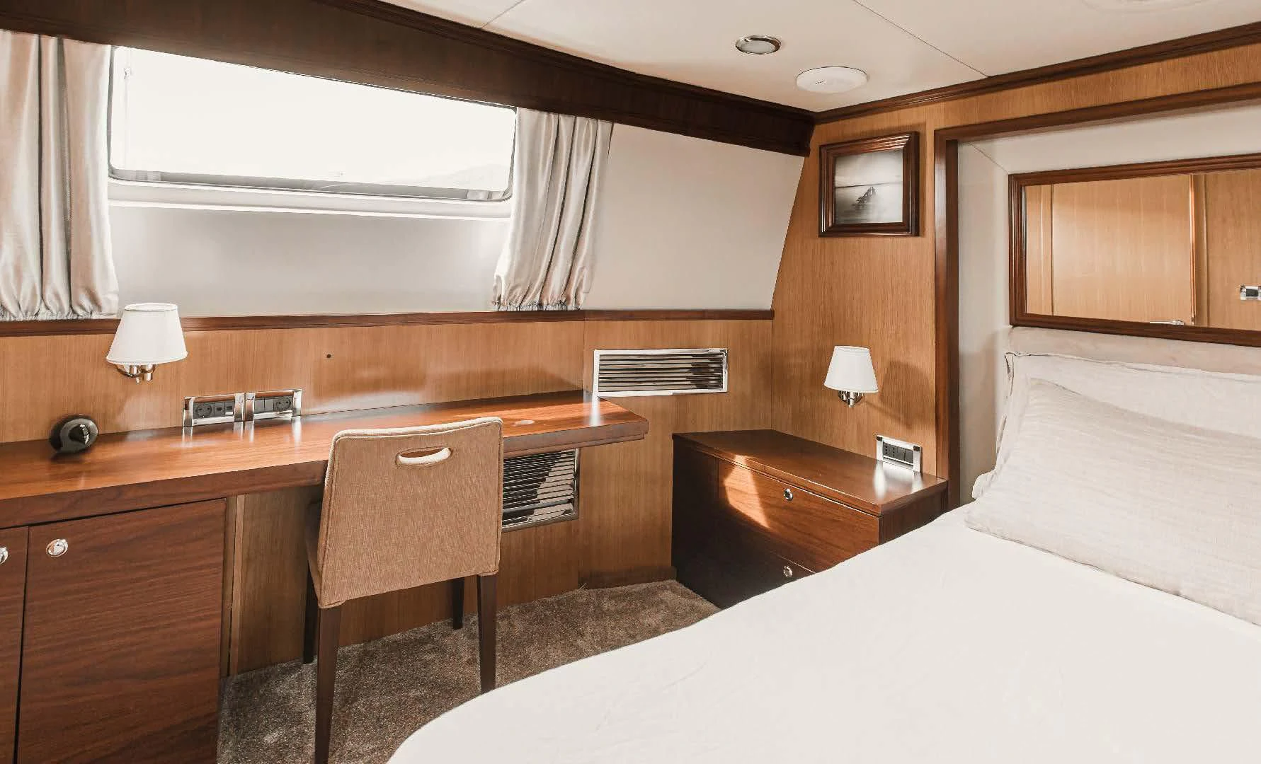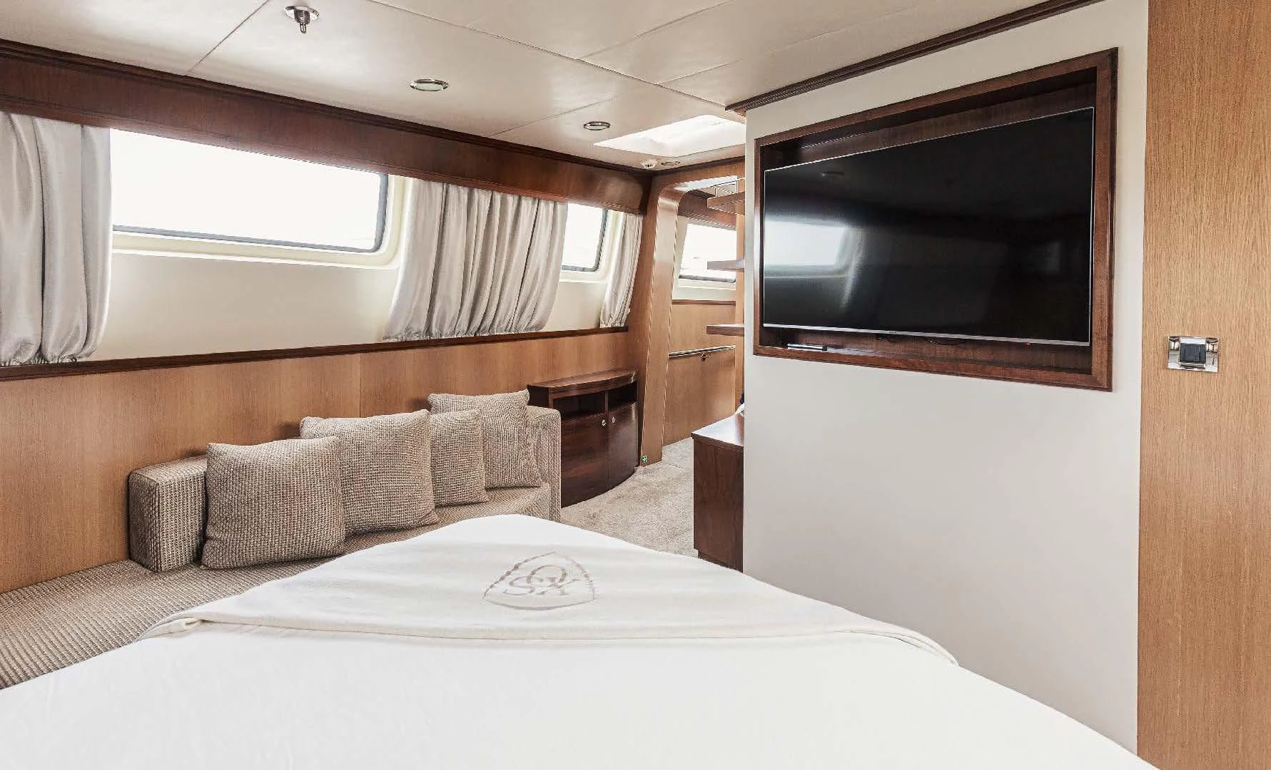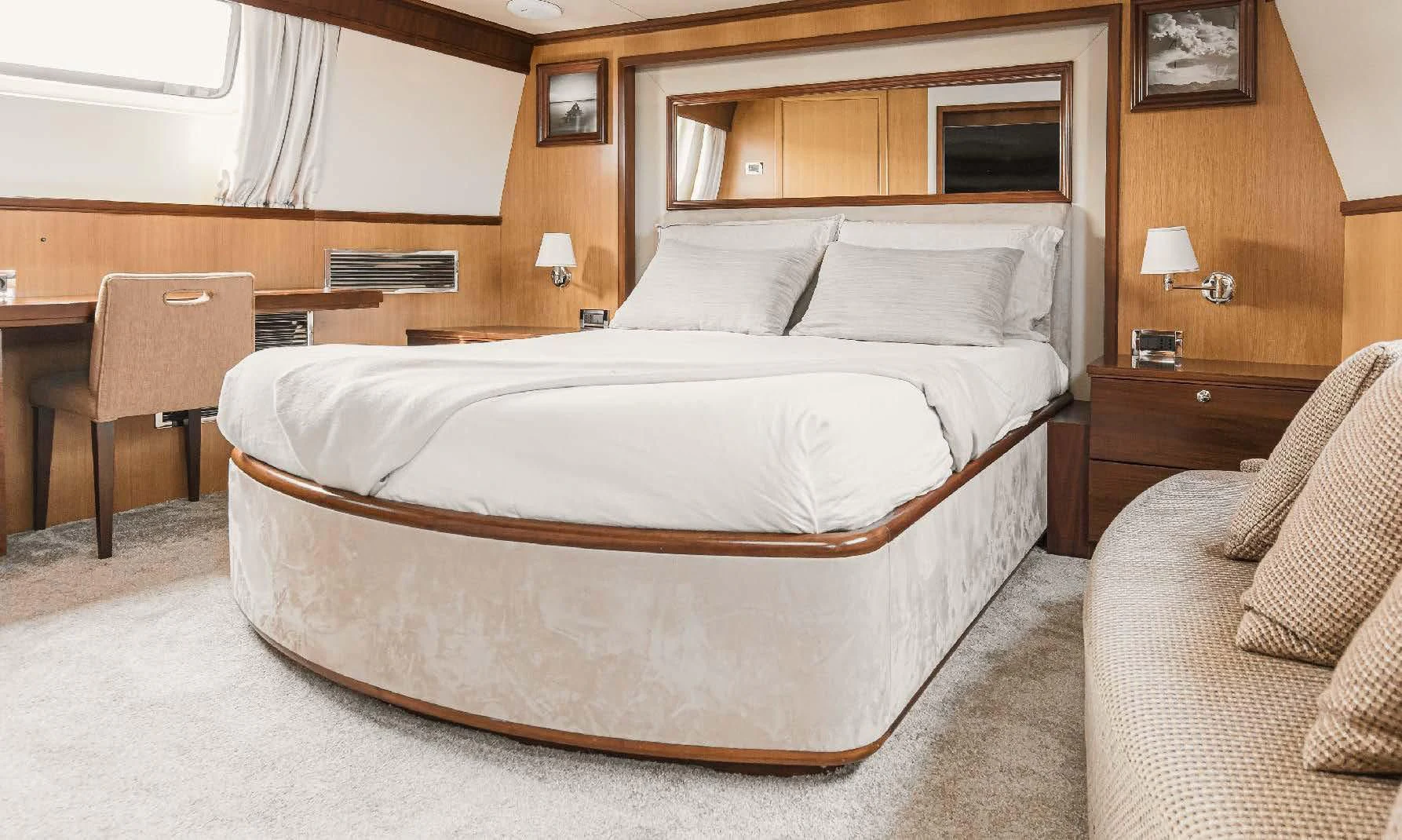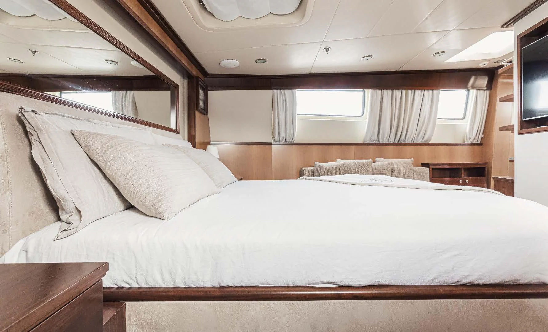 Step inside XO OF THE SEAS and be greeted by interiors that radiate refined luxury coupled with homely comfort - a testament to her skilled interior designer's prowess. With accommodations for up to eleven guests across five sumptuous cabins, each room is designed as a personal haven echoing tranquility and opulence. The master stateroom stands out with its spacious layout, elegant décor, en-suite facilities, and breathtaking views from large windows that bathe the room in natural light.