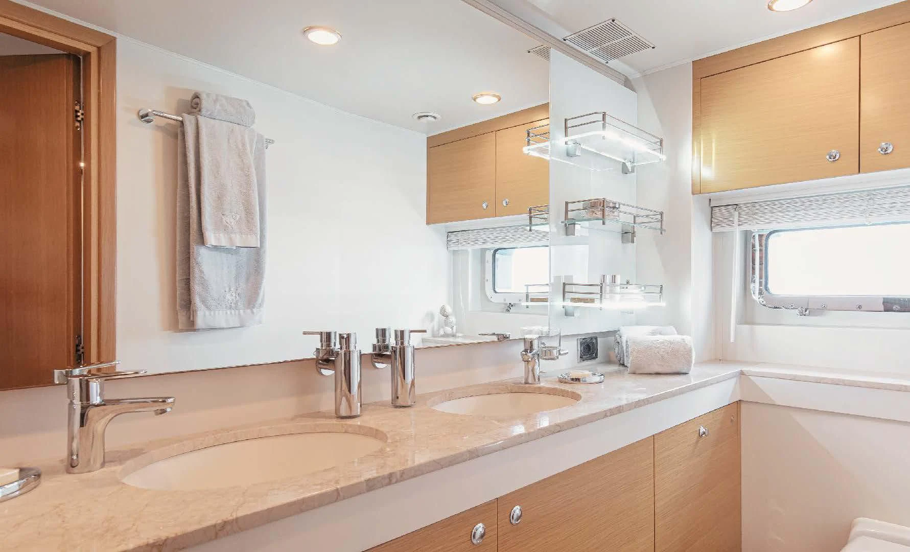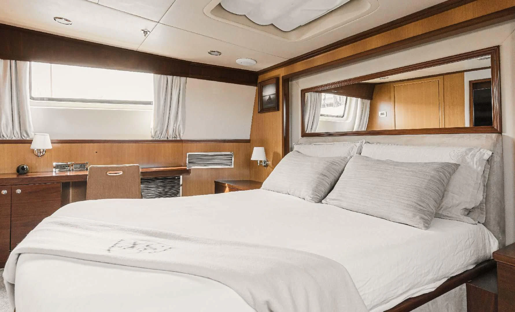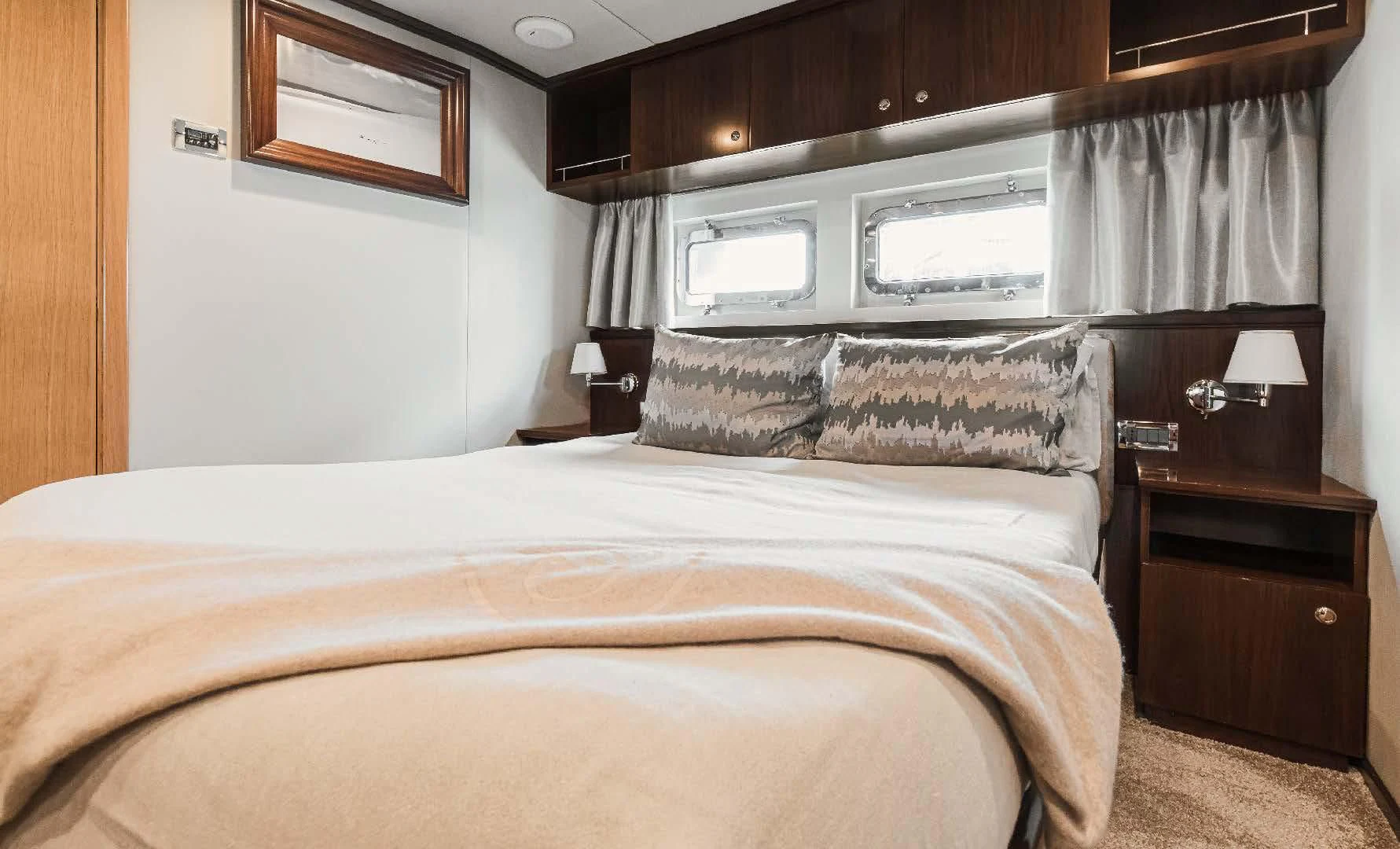 Step inside XO OF THE SEAS and be greeted by interiors that radiate refined luxury coupled with homely comfort - a testament to her skilled interior designer's prowess. With accommodations for up to eleven guests across five sumptuous cabins, each room is designed as a personal haven echoing tranquility and opulence. The master stateroom stands out with its spacious layout, elegant décor, en-suite facilities, and breathtaking views from large windows that bathe the room in natural light.