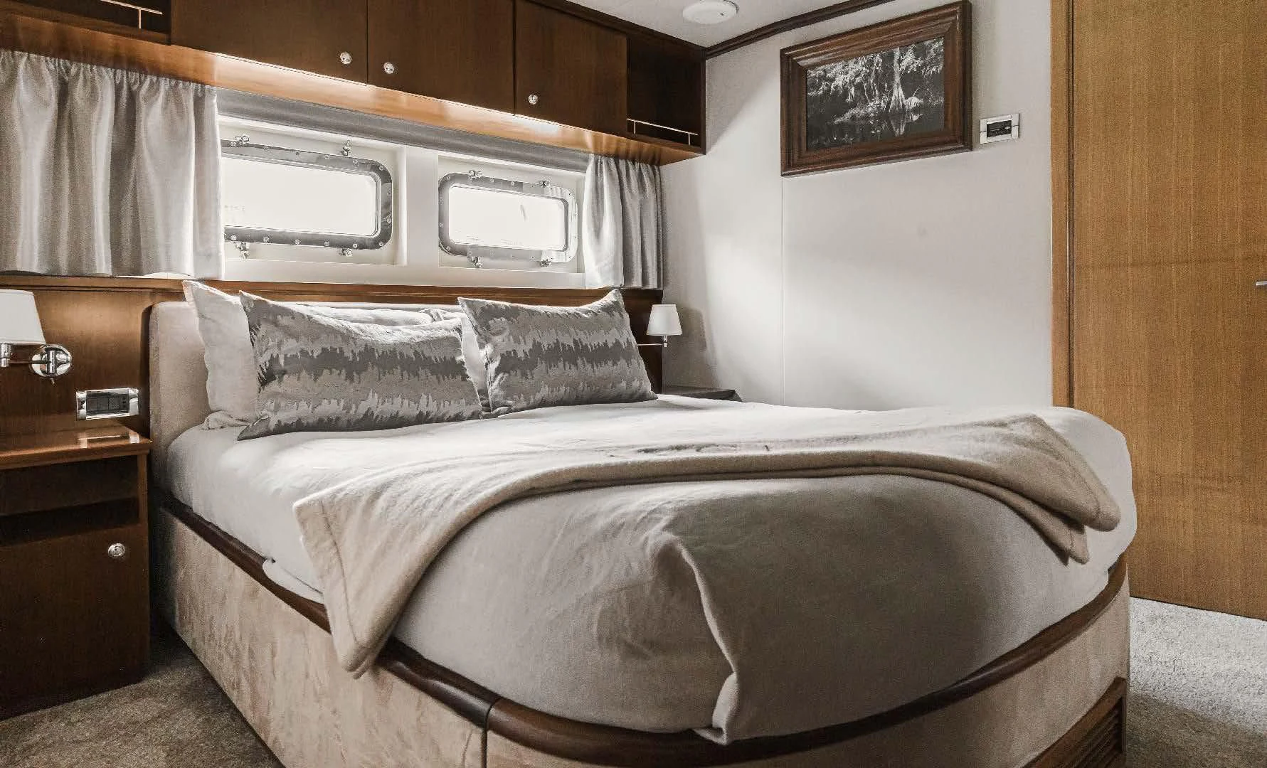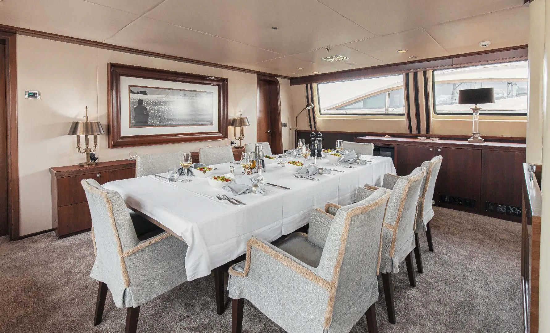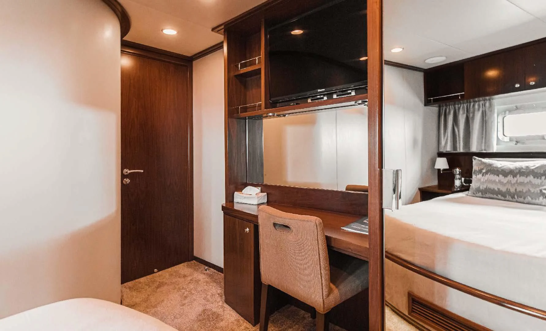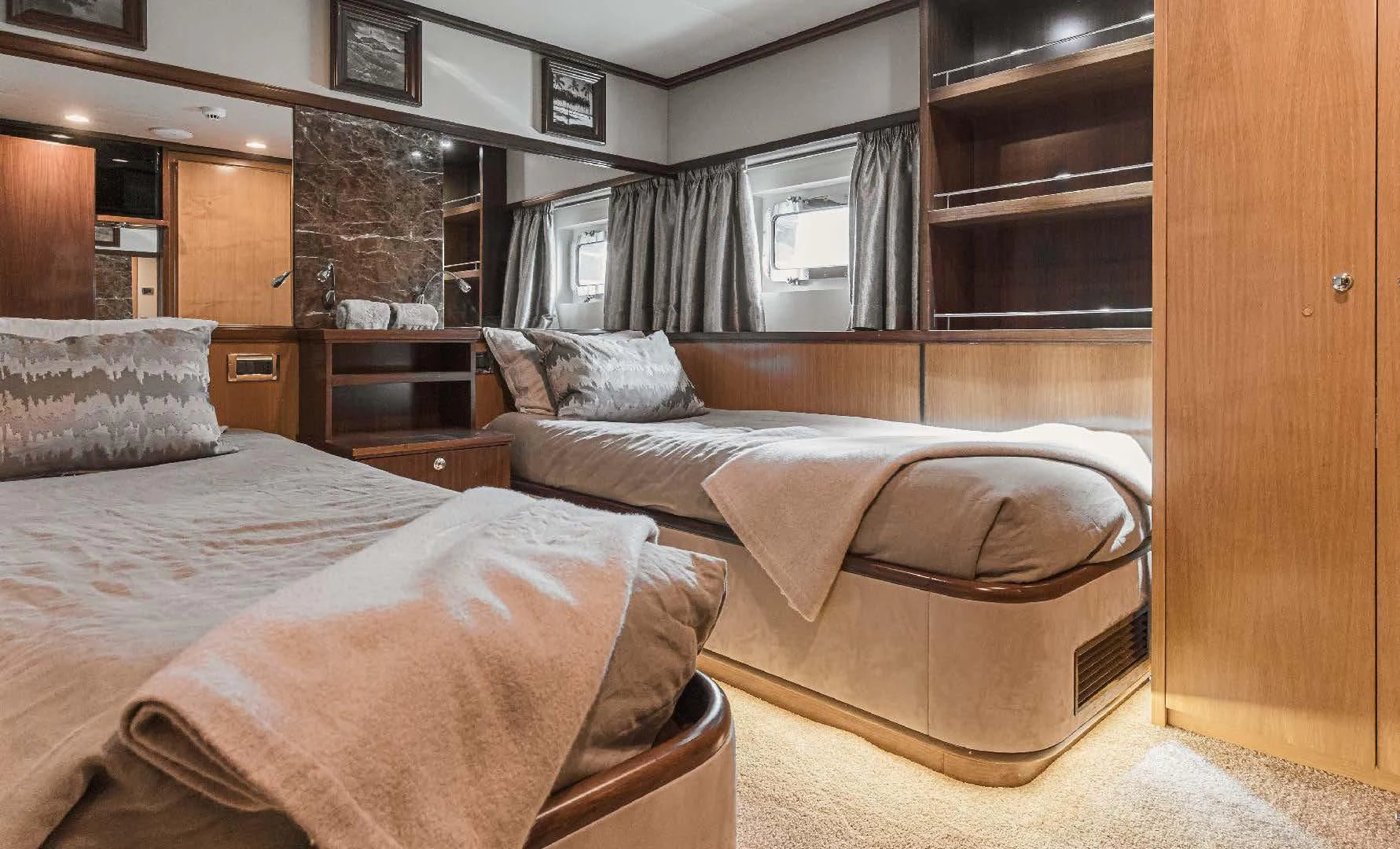 Step inside XO OF THE SEAS and be greeted by interiors that radiate refined luxury coupled with homely comfort - a testament to her skilled interior designer's prowess. With accommodations for up to eleven guests across five sumptuous cabins, each room is designed as a personal haven echoing tranquility and opulence. The master stateroom stands out with its spacious layout, elegant décor, en-suite facilities, and breathtaking views from large windows that bathe the room in natural light.