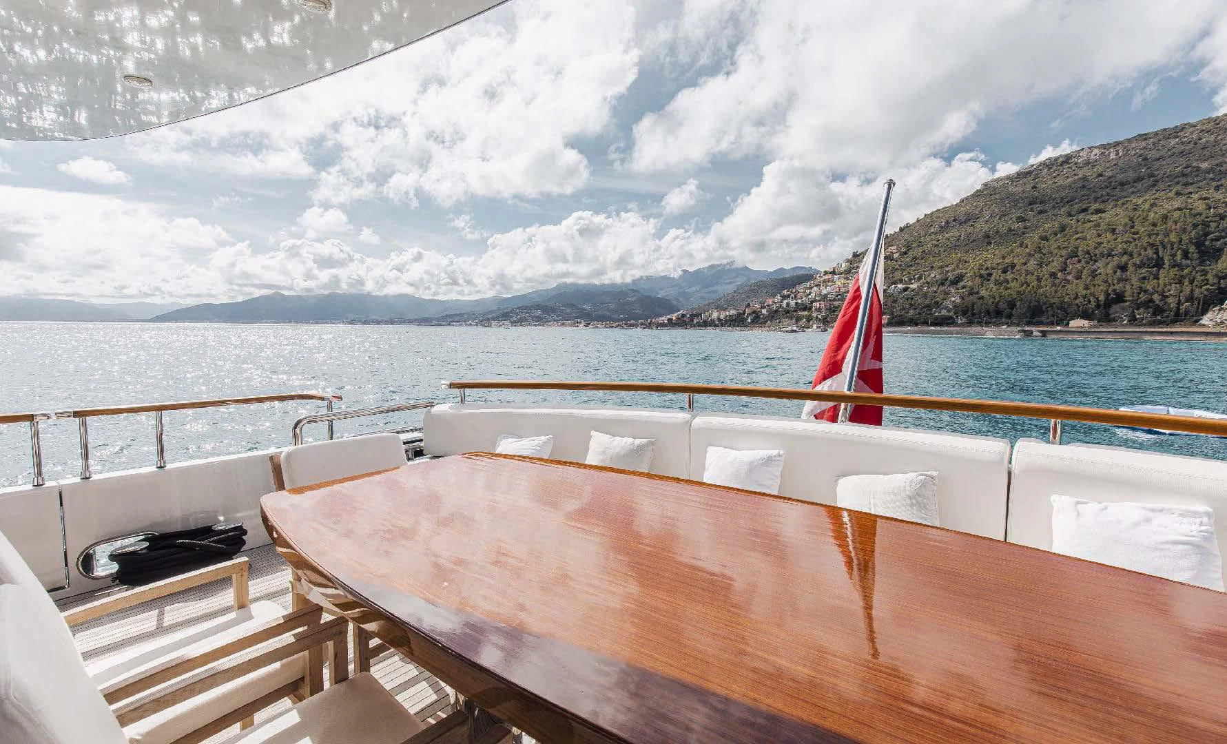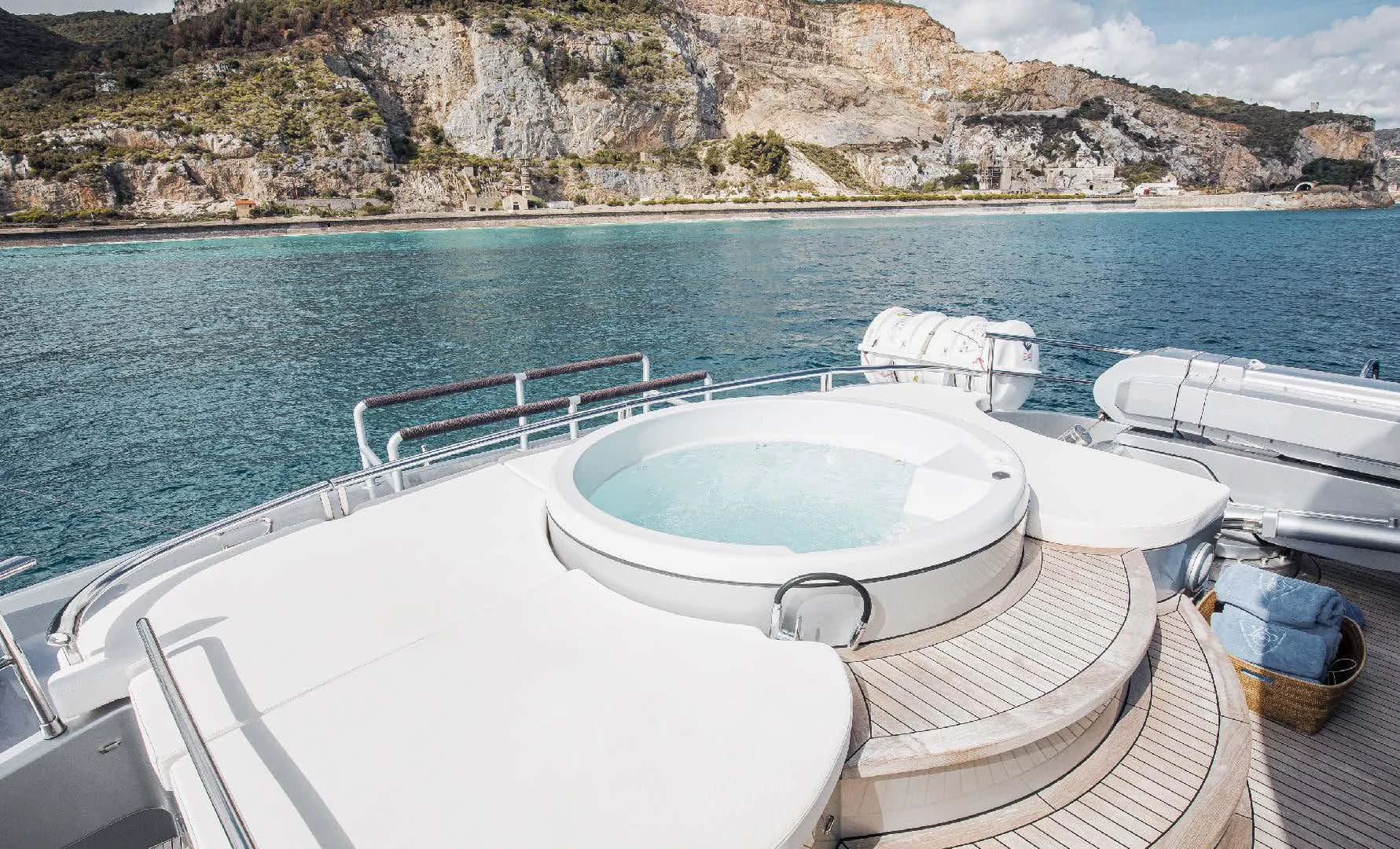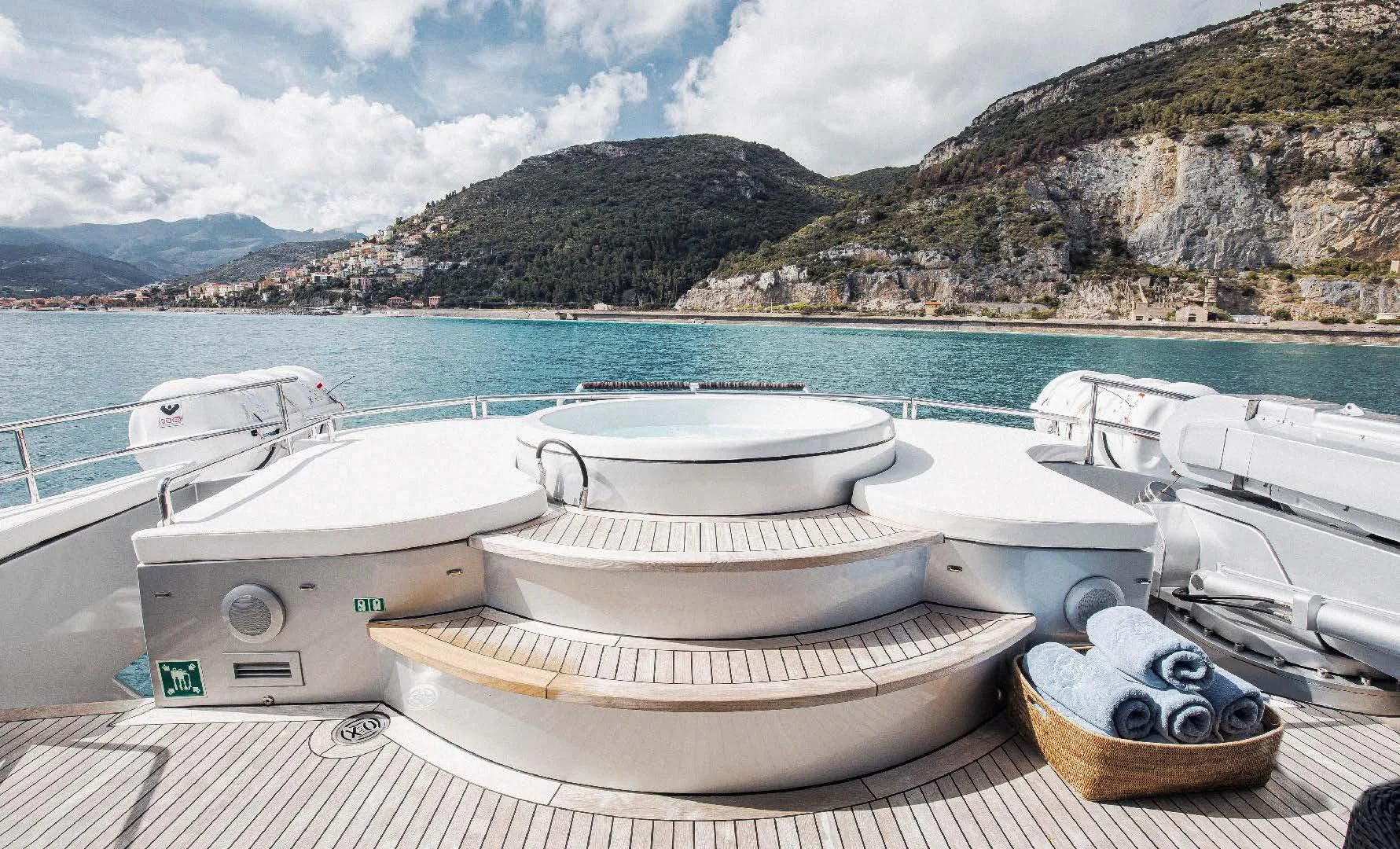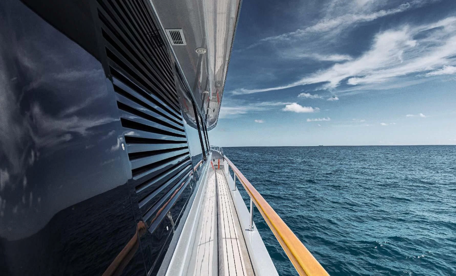 The exterior design of XO OF THE SEAS is nothing short of stunning. Her steel hull and superstructure exude strength and resilience while maintaining an aura of sleek gracefulness. The yacht's beam measures at 24 feet 9 inches (7.6 meters), providing generous outdoor spaces for relaxation and entertainment under the azure sky. The sun deck invites guests to unwind on plush loungers or soak in the Jacuzzi's soothing bubbles while savoring panoramic sea views. Alfresco dining areas offer delightful gastronomic experiences amidst refreshing ocean breezes.